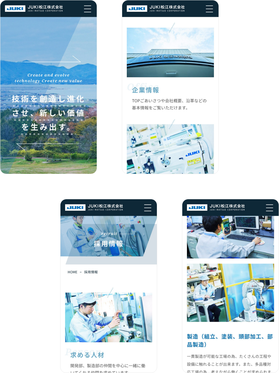 JUKI松江のオフィシャルサイトです。島根県松江市で工業用ミシンや部品の生産、生産支援設備の開発、製造を行なっております。また、求人情報も記載しております。ものづくりに興味のある方はぜひエントリーしてください。